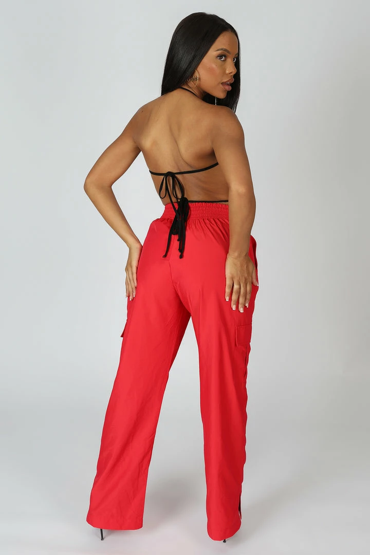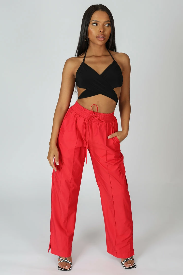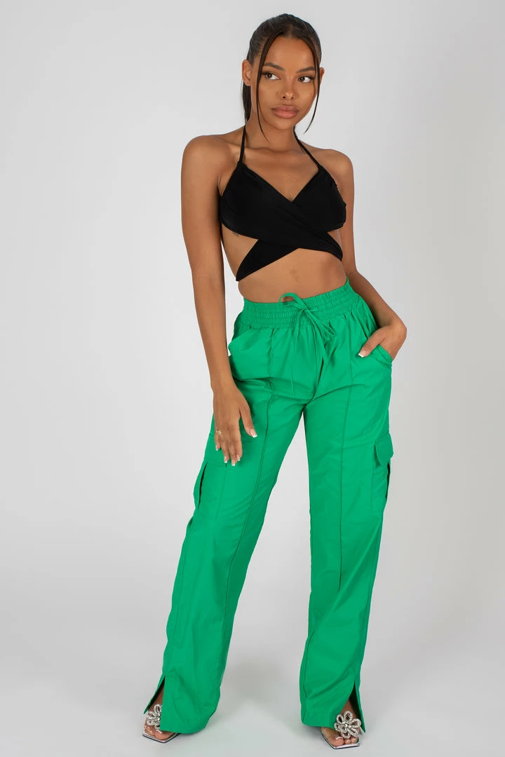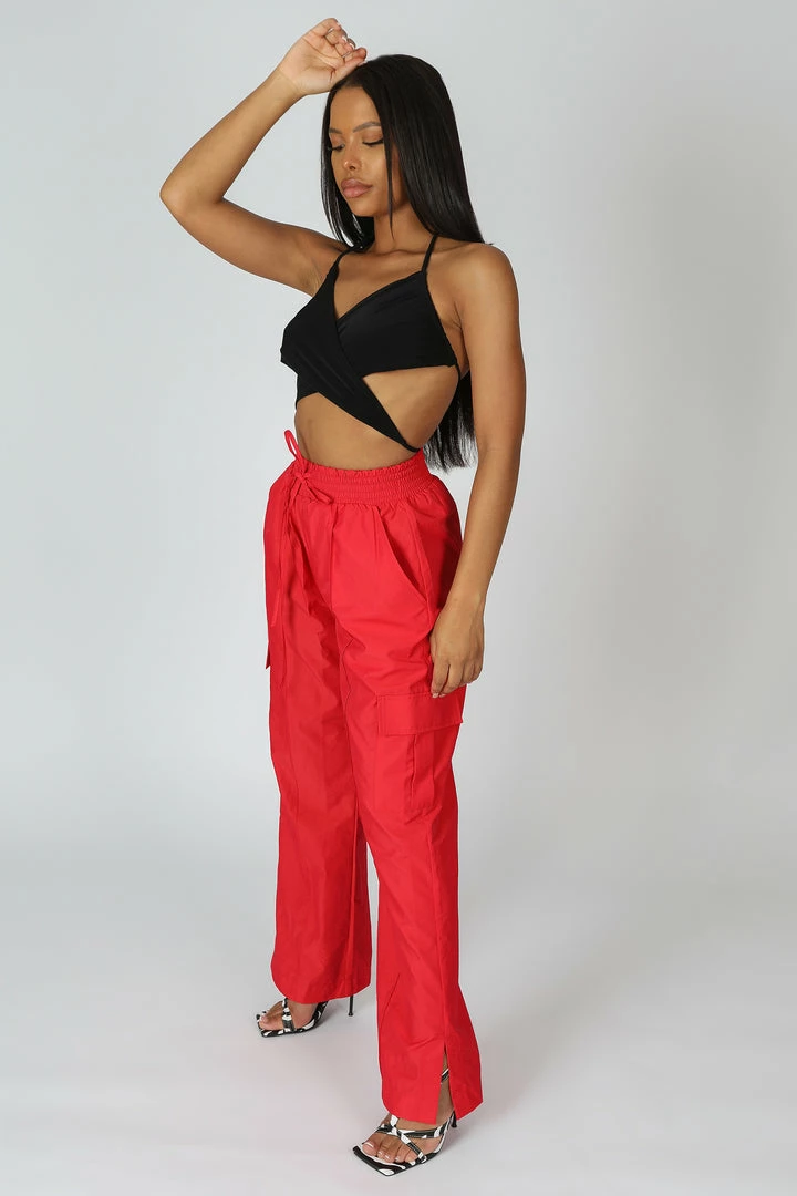 A SLINKY SOFT TOUCH BLACK HALTERNECK CROP TOP IN THE SHAPE OF A BUTTERFLY.