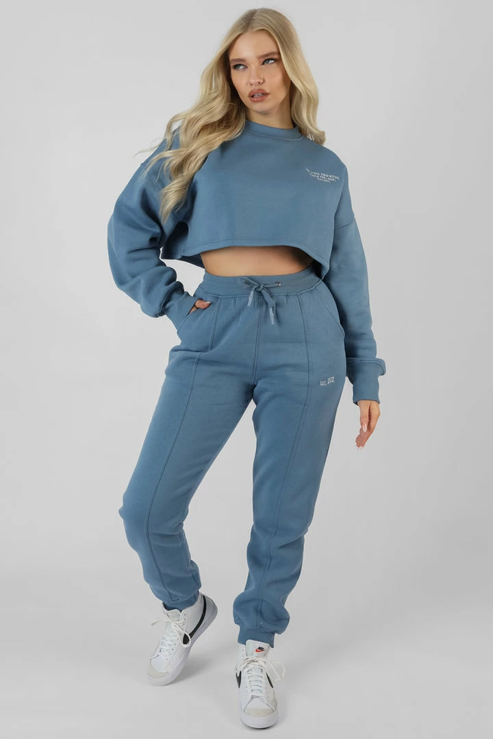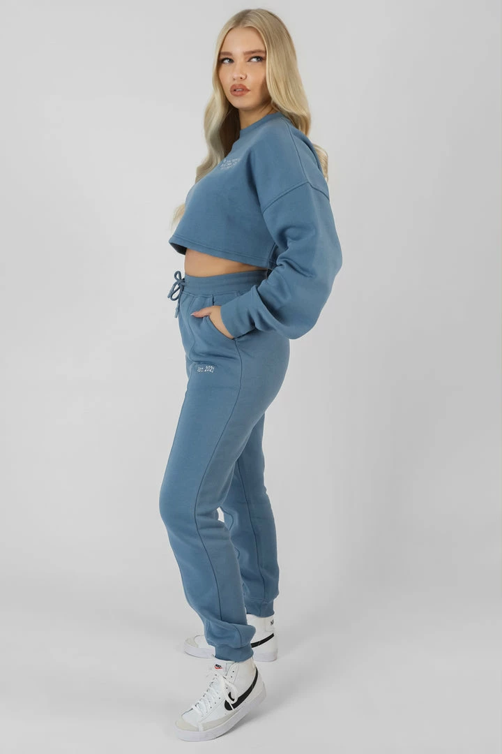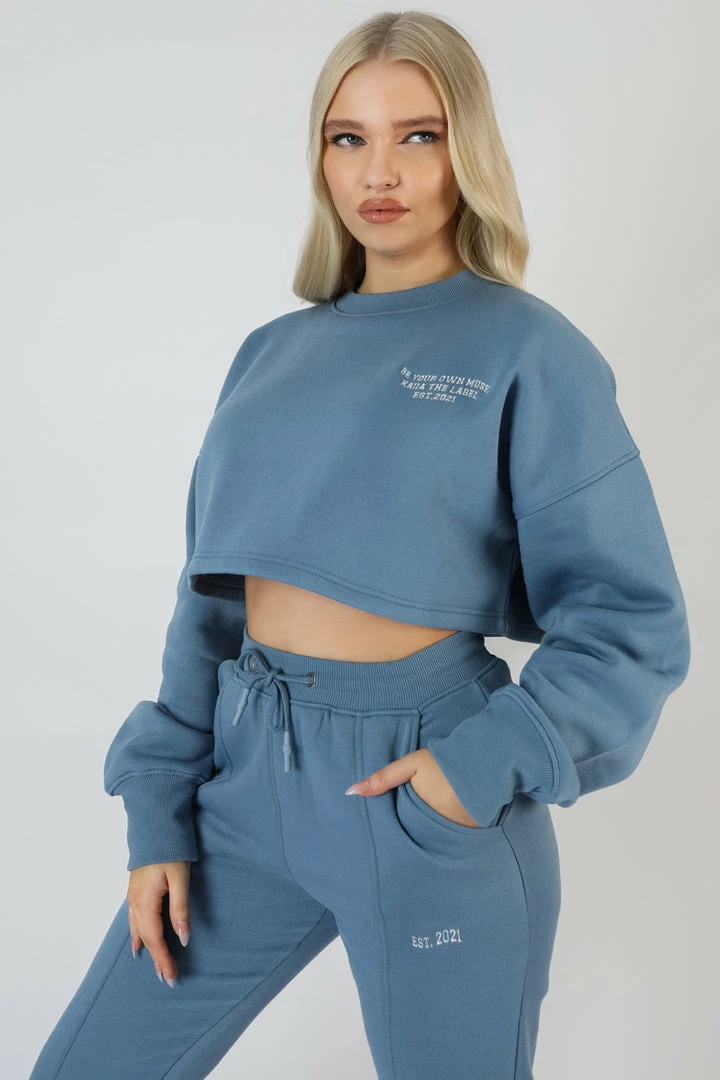 AN OVERSIZED FIT SWEATSHIRT IN BLUE WITH BE YOUR OWN MUSE PRINTED ON IN A WAVEY PATTERN. PAIR WITH THE BE YOUR OWN MUSE WAVE PRINT JOGGER FOR THE ULTIMATE SET.