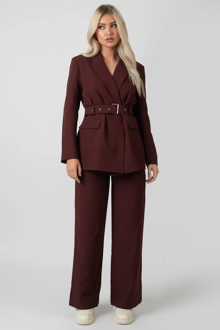 Update your wardrobe with this belted boxy blazer with pockets in port.