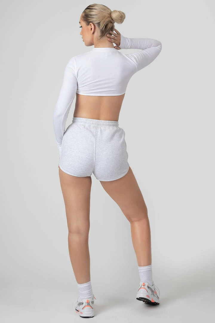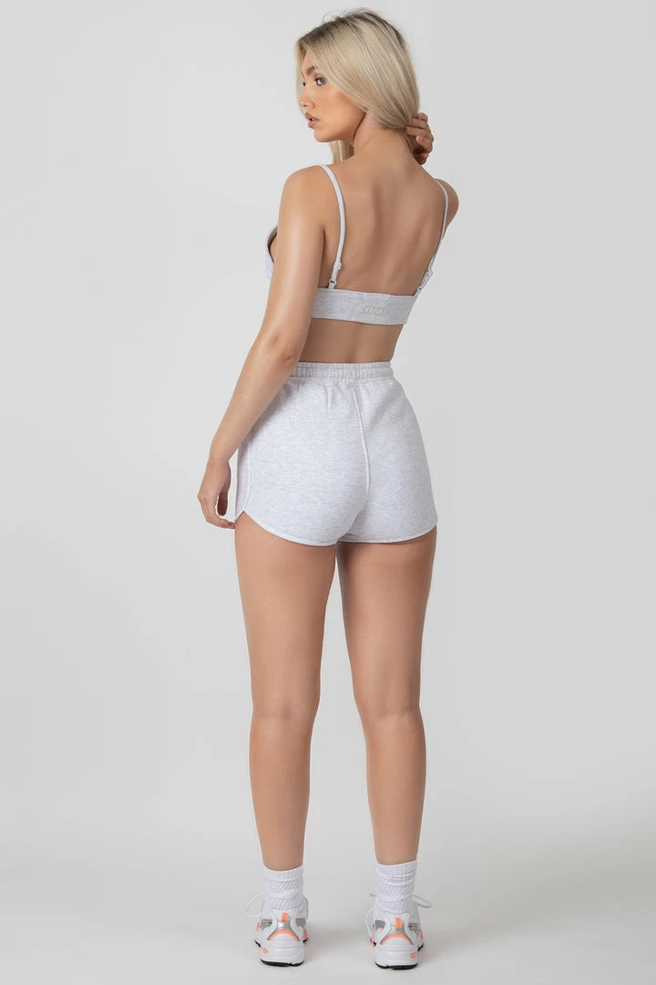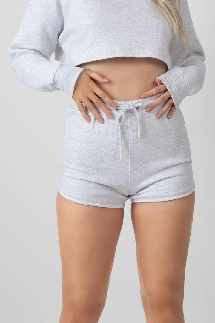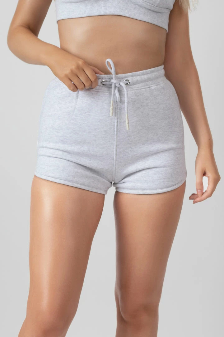Short booty shorts with a drawstring waist in oatmeal marl