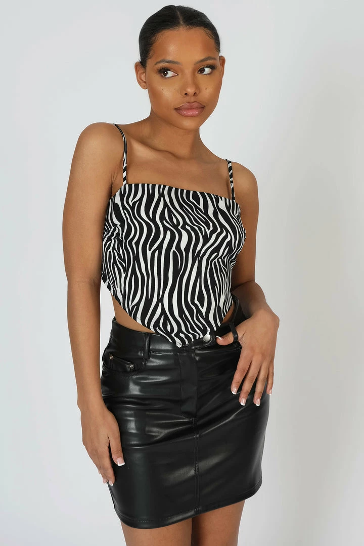 A BUTTON WAIST MINI SKIRT IN BLACK PU WITH SILVER DETAILING