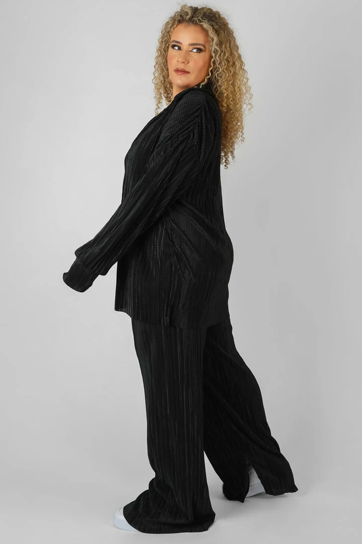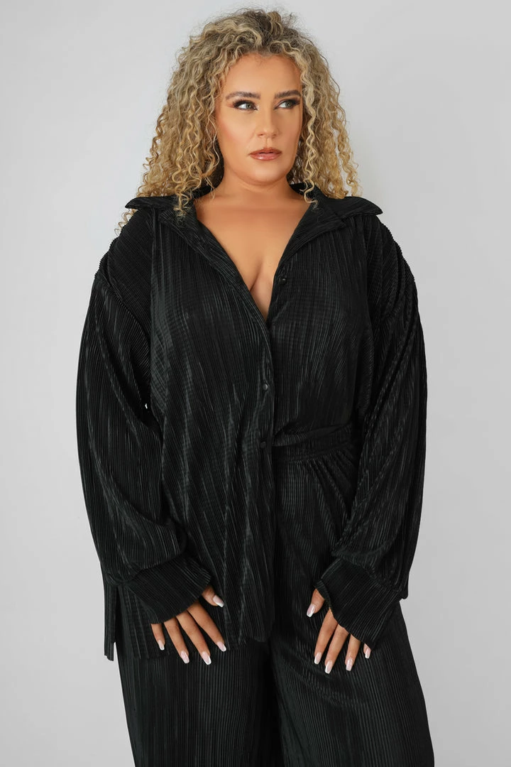AN OVERSIZED FIT BUTTTON UP PLISSE SHIRT IN BLACK.