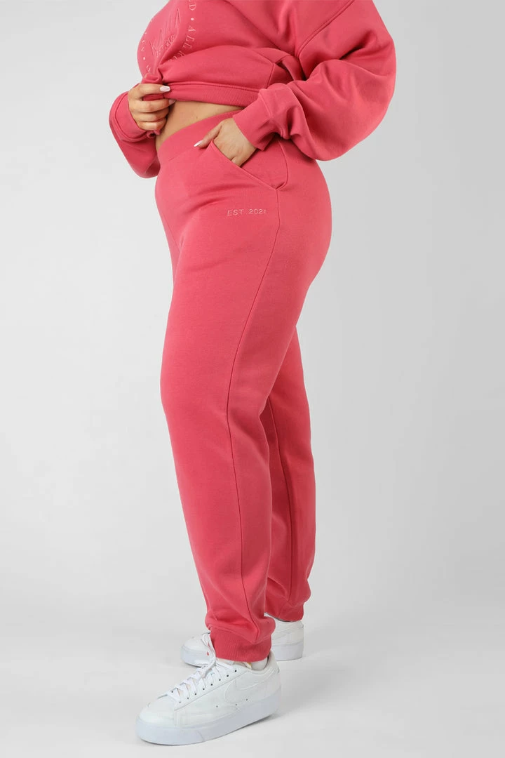 OVERSIZED FIT 90’S STYLE JOGGERS IN CORAL FEATURING AN ELASTICATED WAIST, POCKETS AND CUFFED HEMS.