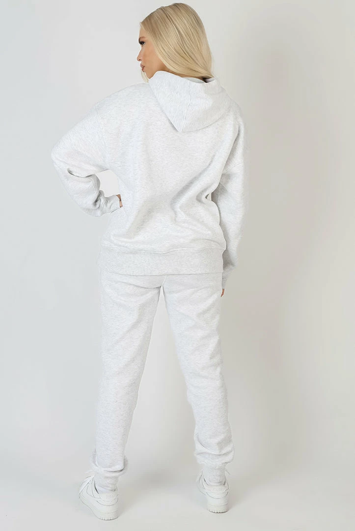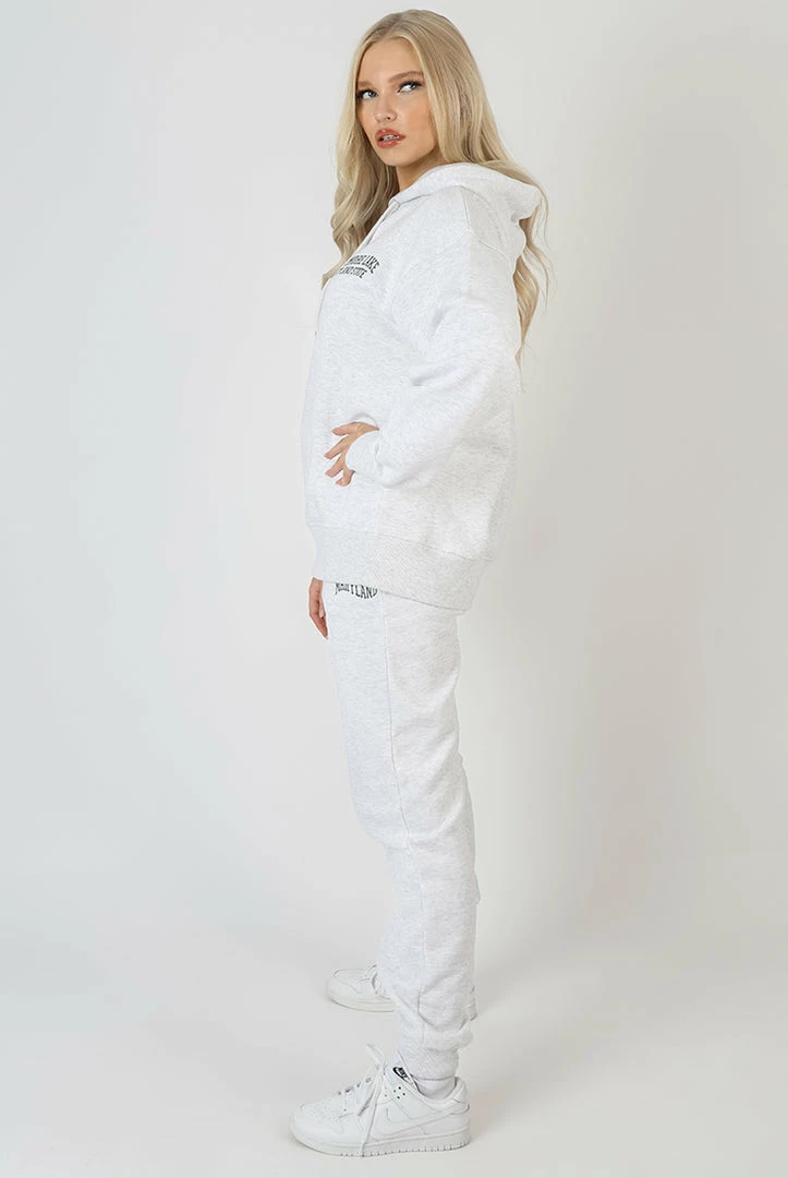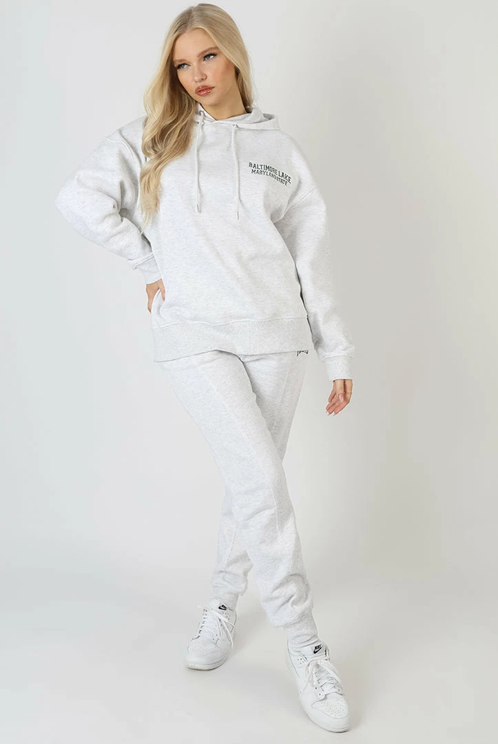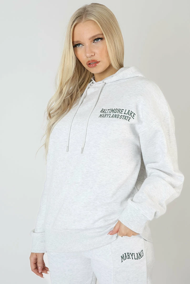 AN OVERSIZED FIT HOODIE IN OATMEAL MARL WITH A SLOGAN IN A WAVE EMBROIDERED ON