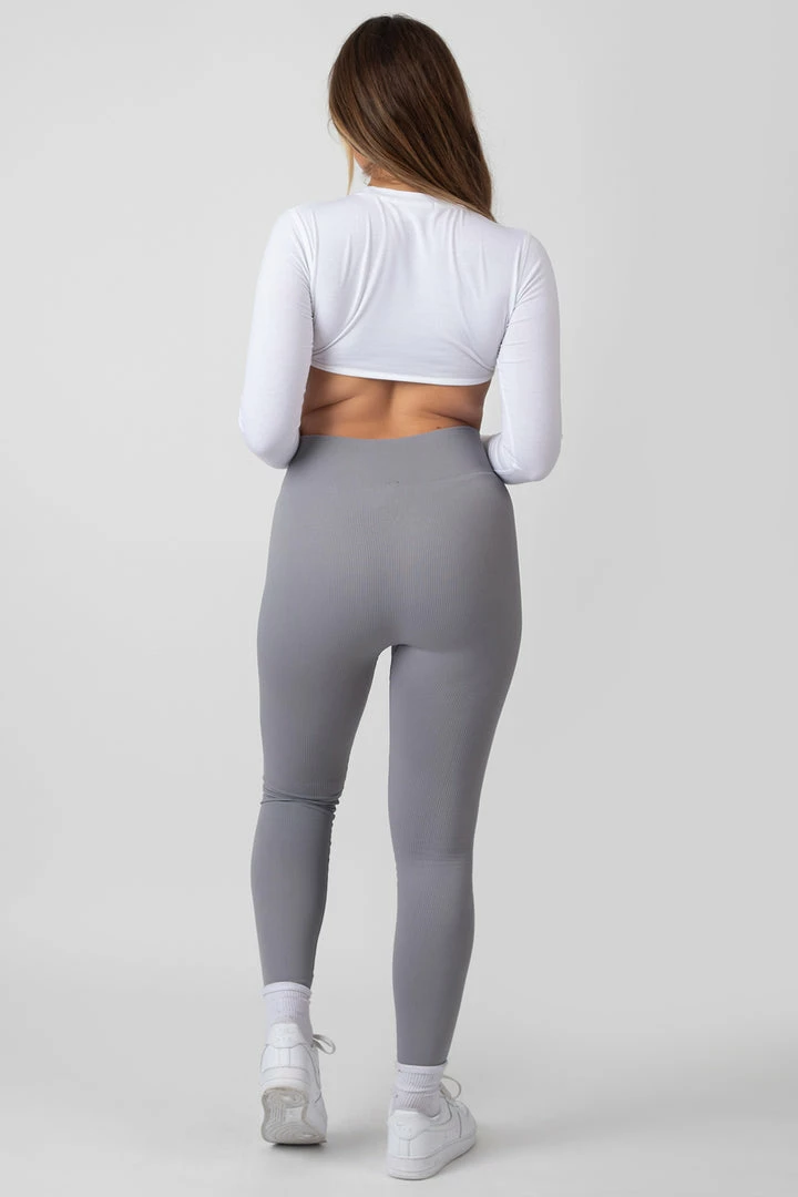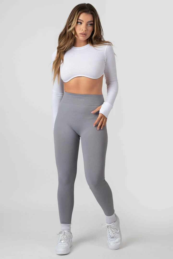 A long sleeve under bust detail super cropped t-shirt in white with thumb hole details.