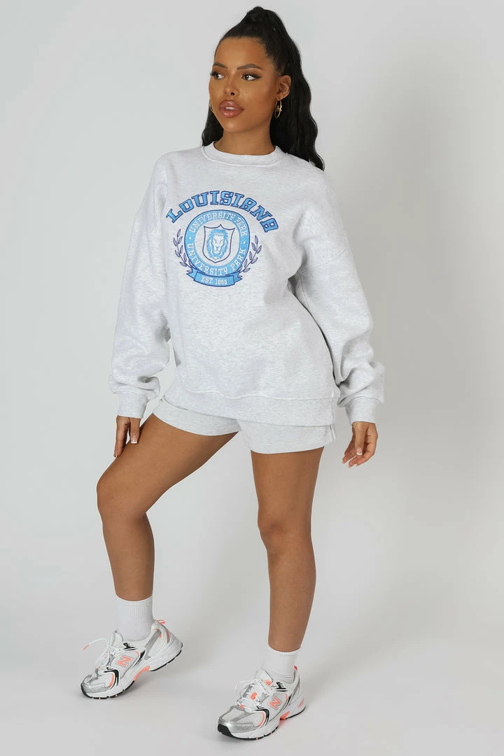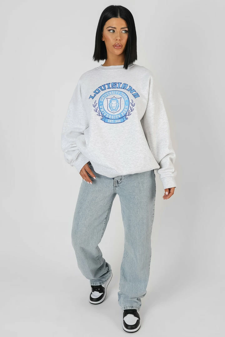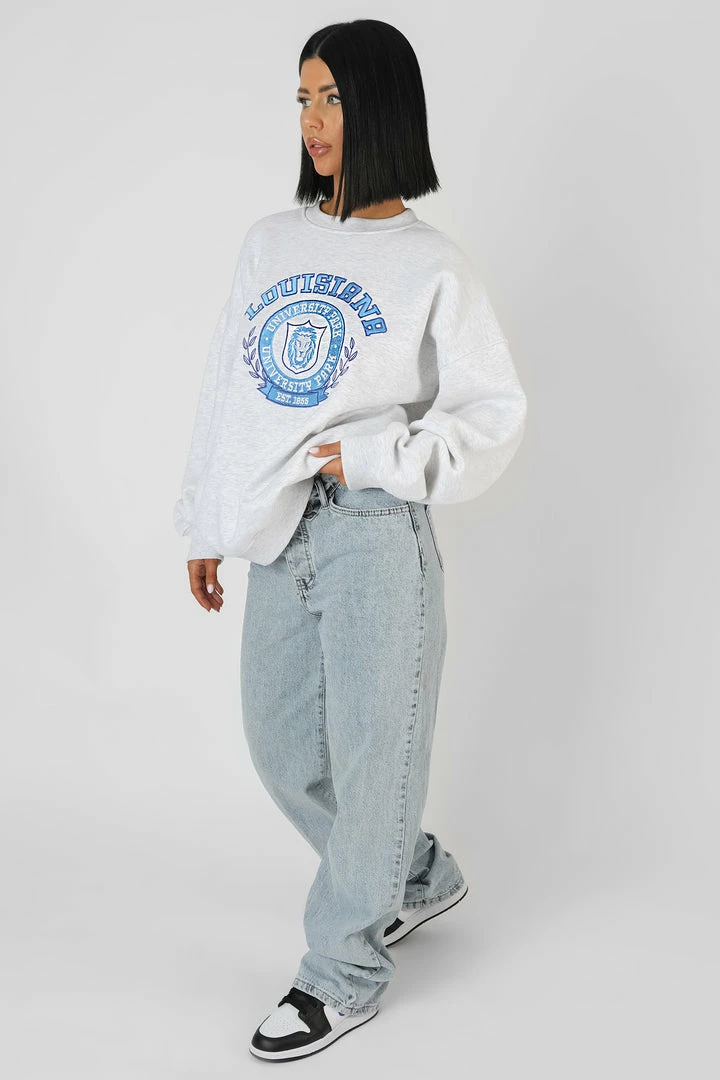 OVERSIZED FIT OATMEAL MARL SWEATSHIRT WITH BLUE EMBROIDERY