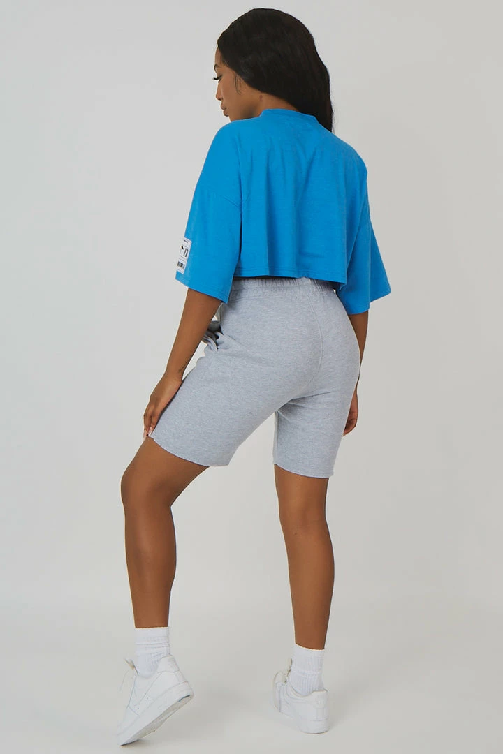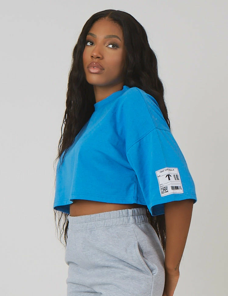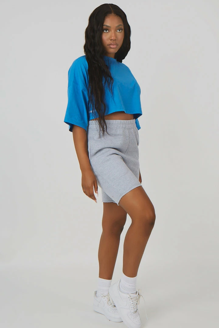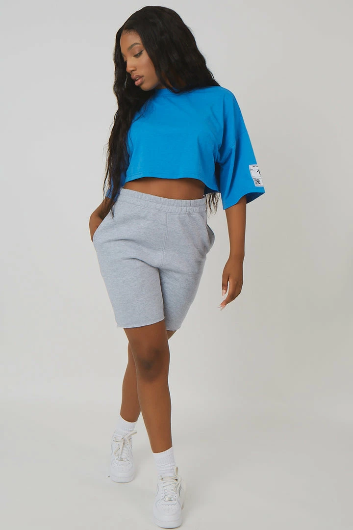 A t-shirt with an oversized fit and short sleeves in blue featuring detailing on the sleeve