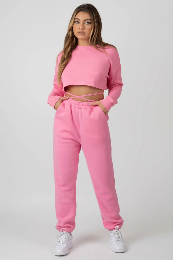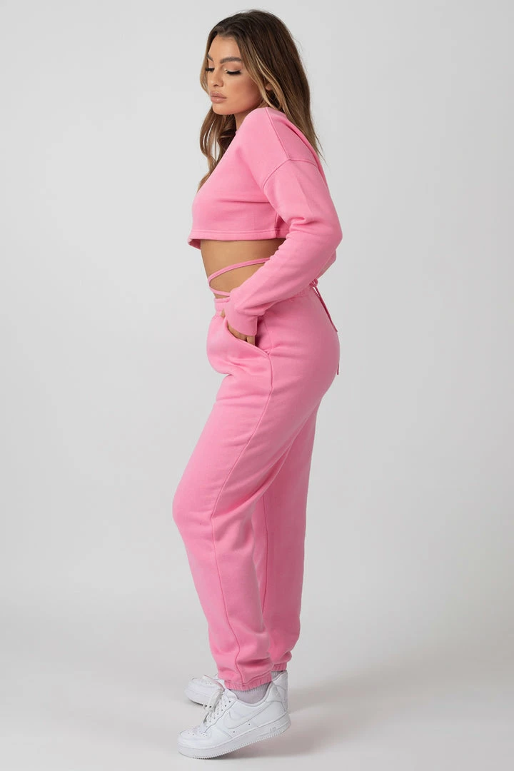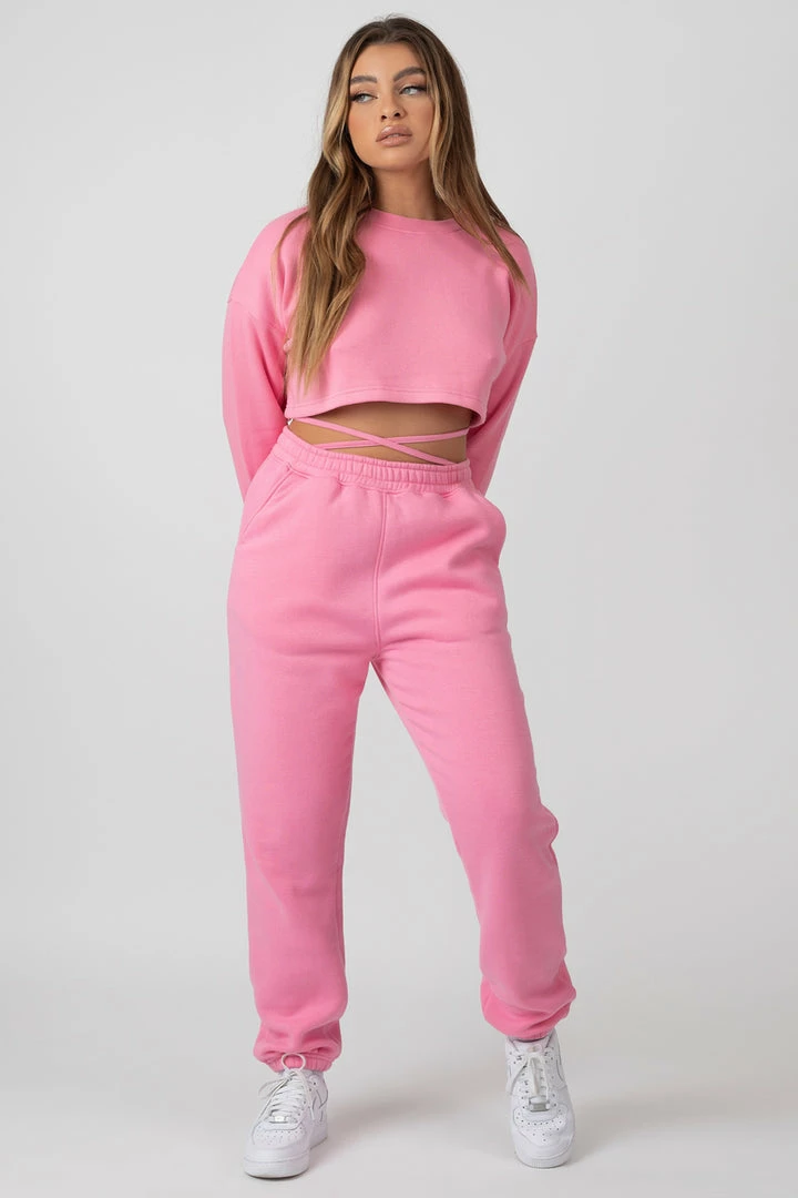 A long sleeve OVERSIZED cropped sweatshirt with a crew neck in pink