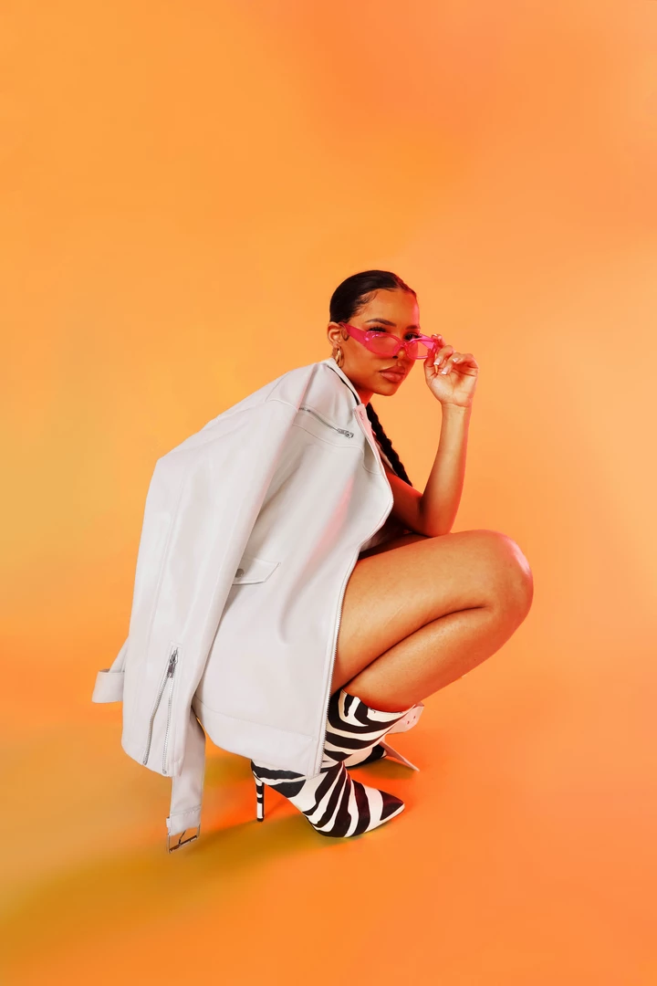AN OVERSIZED FIT BIKER JACKET IN A STONE WHITE PU WITH SILVER DETAILING.
