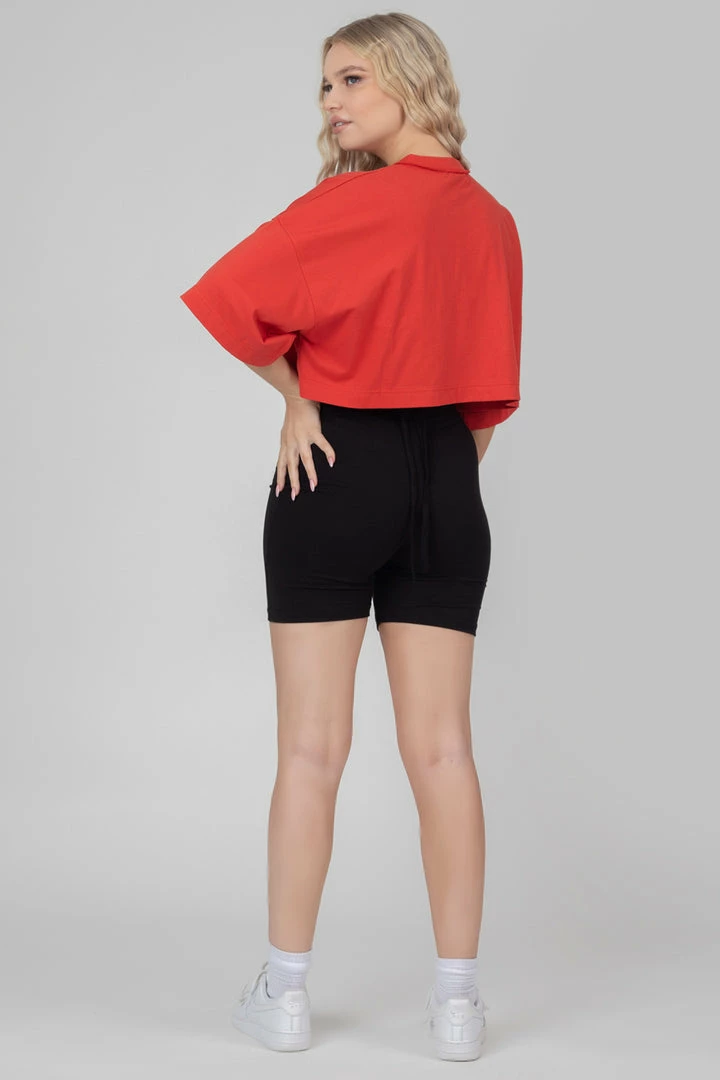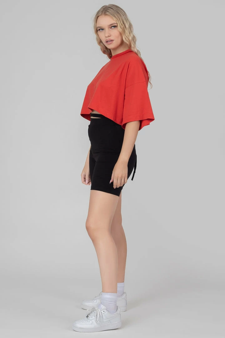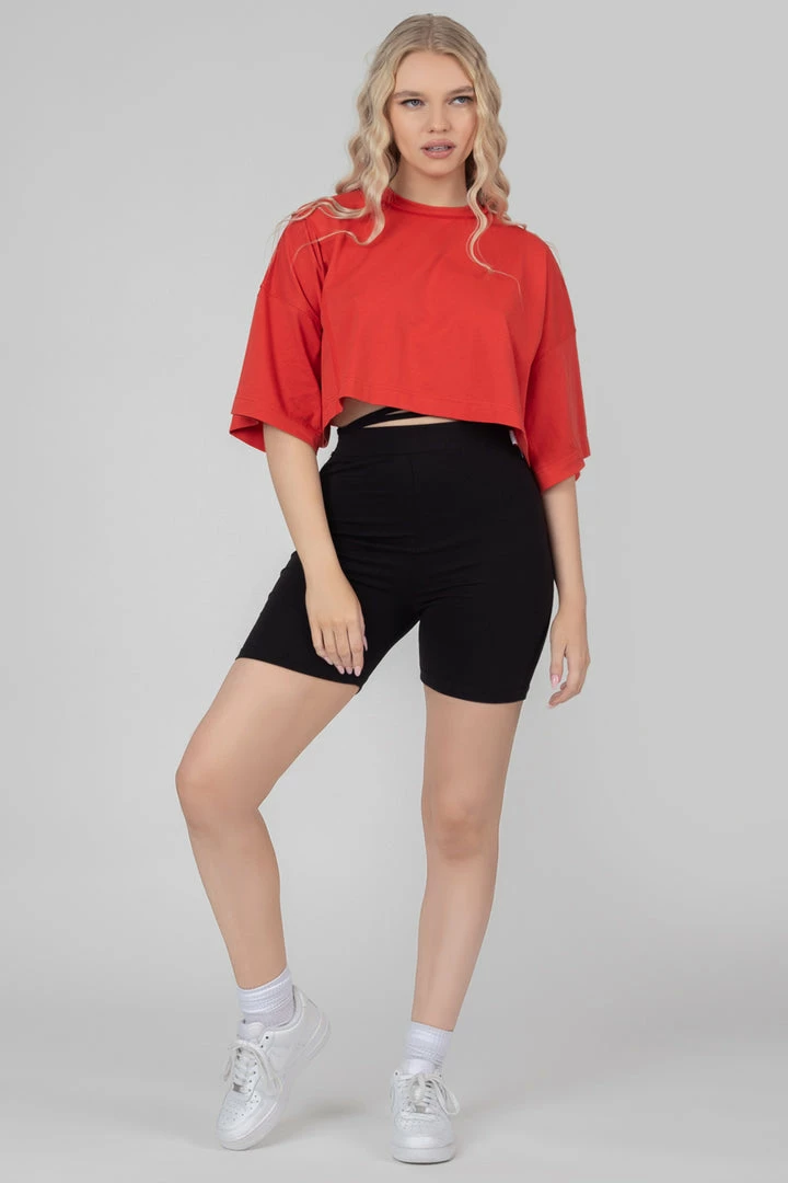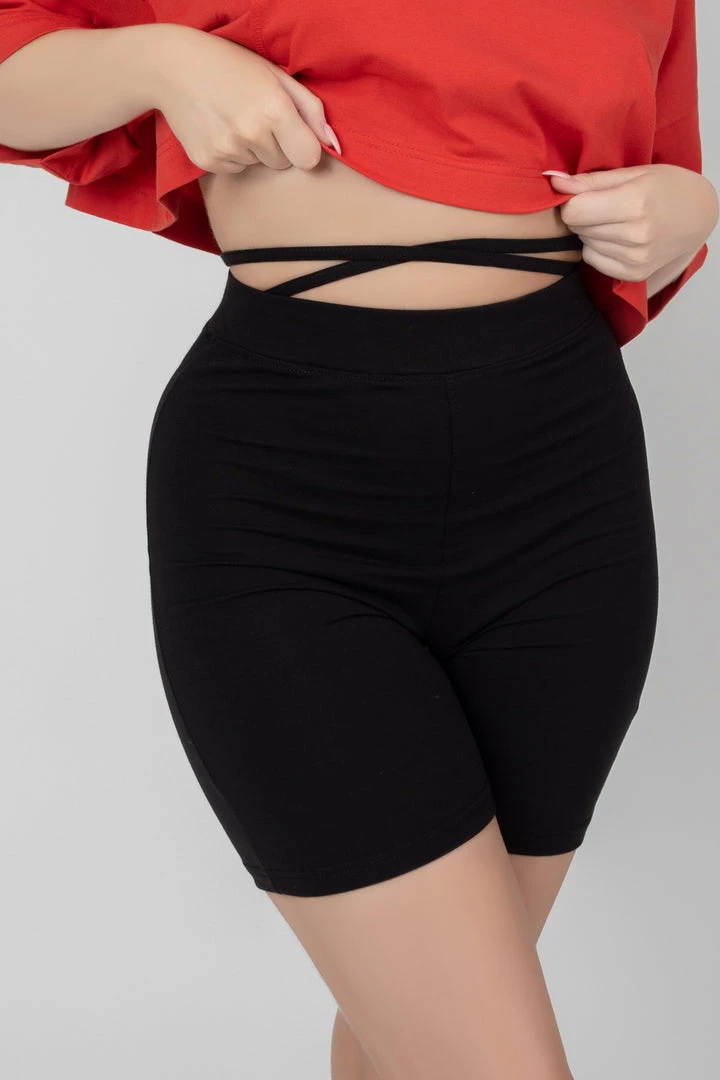 High waisted cycling shorts in black featuring a strap tie waist detail.