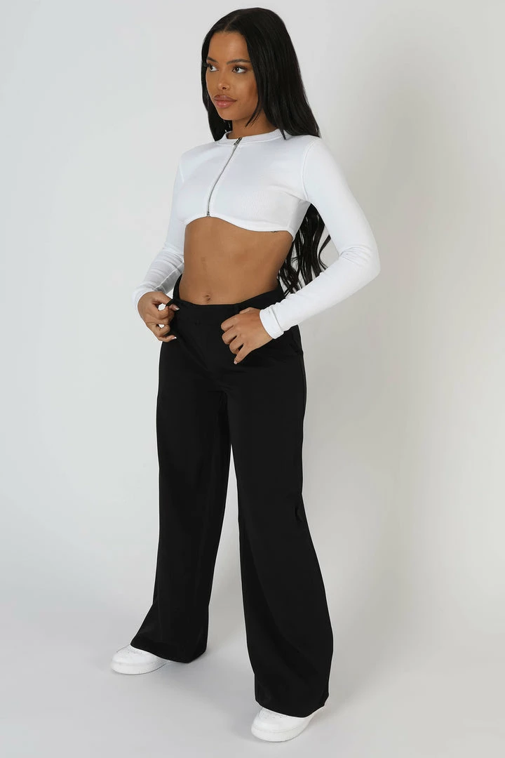 OUR ICONIC LONG SLEEVE UNDERBUST CROP TOP BRALET IN A THICK FLATTERING RIBBED MATERIAL IN WHITE WITH A ZIP DOWN THE FRONT