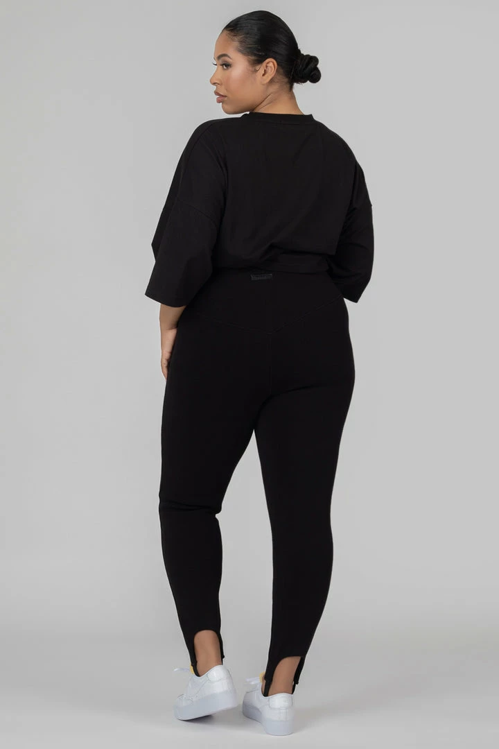 Thick rib high waisted leggings in black with a stirrup design.