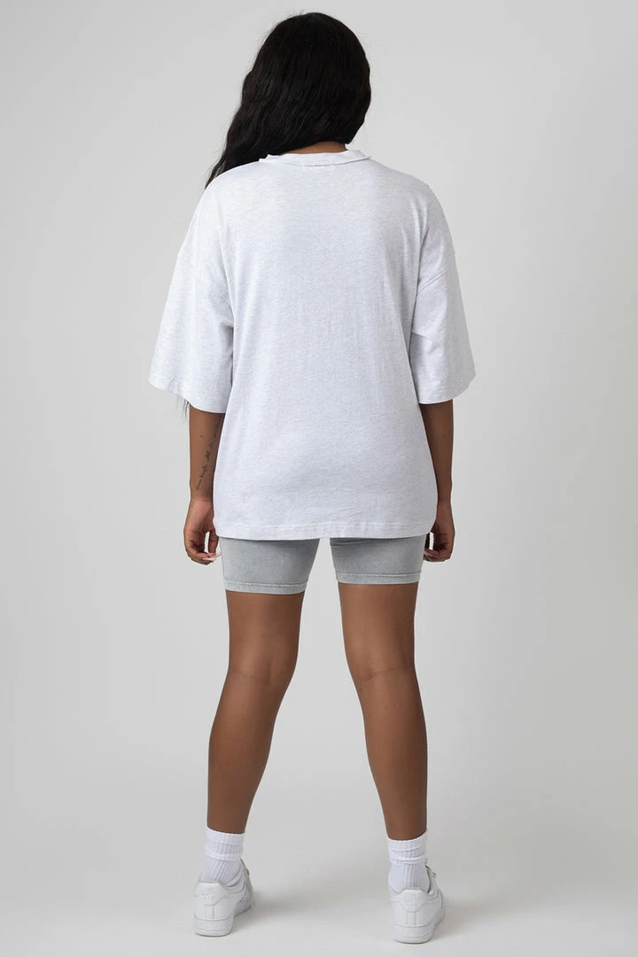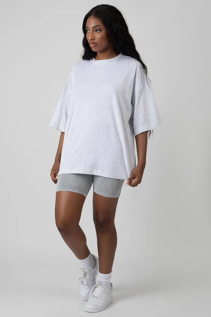 An oversized fit t-shirt with exposed seams in oatmeal marl