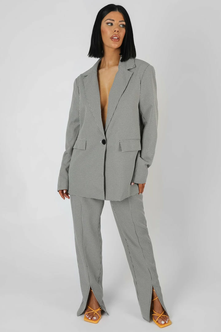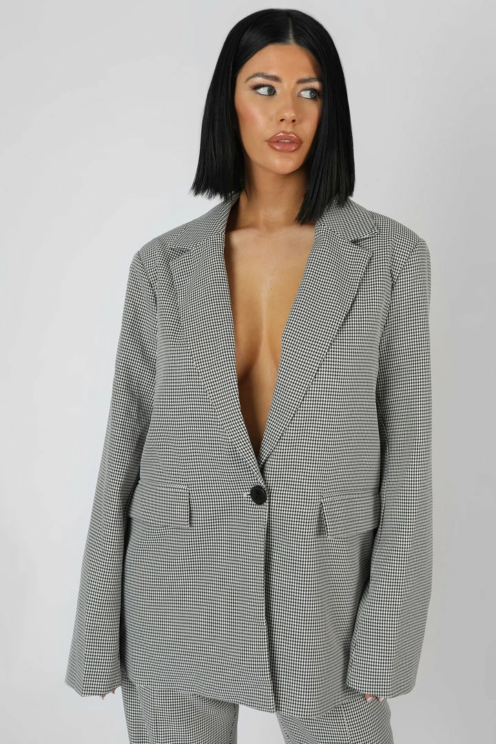 AN OVERSIZED FIT BLAZER IN BLACK AND WHITE HOUNDSTOOTH PRINT.
