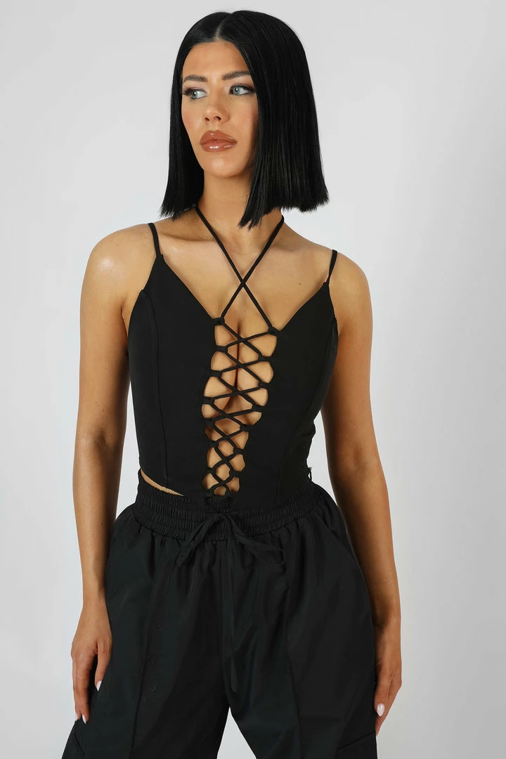 The perfect corset top featuring a lace up detail along the front, flattering boning and a dipped hem