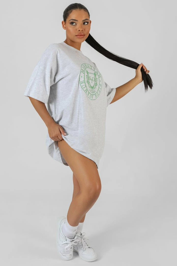 An oversized fit t-shirt dress in oatmeal marl with dress embroidery.