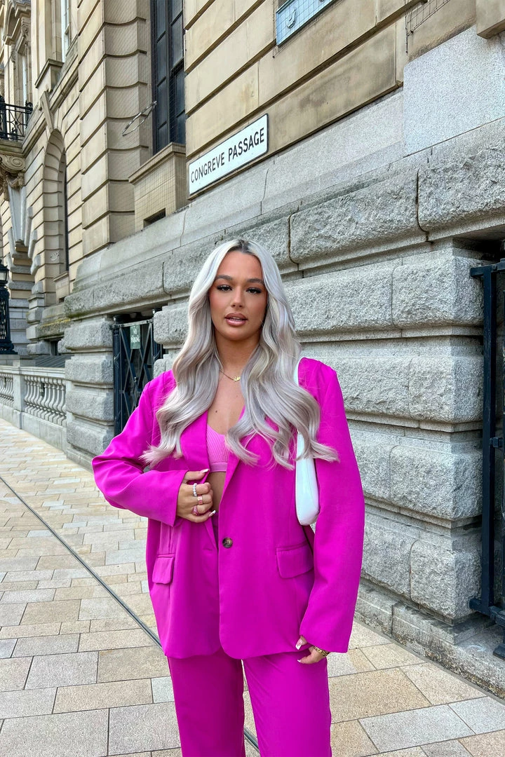 The perfect blazer featuring an oversized dad fit in pink that can be styled casually for an off-duty look or dressed up for a smarter look.