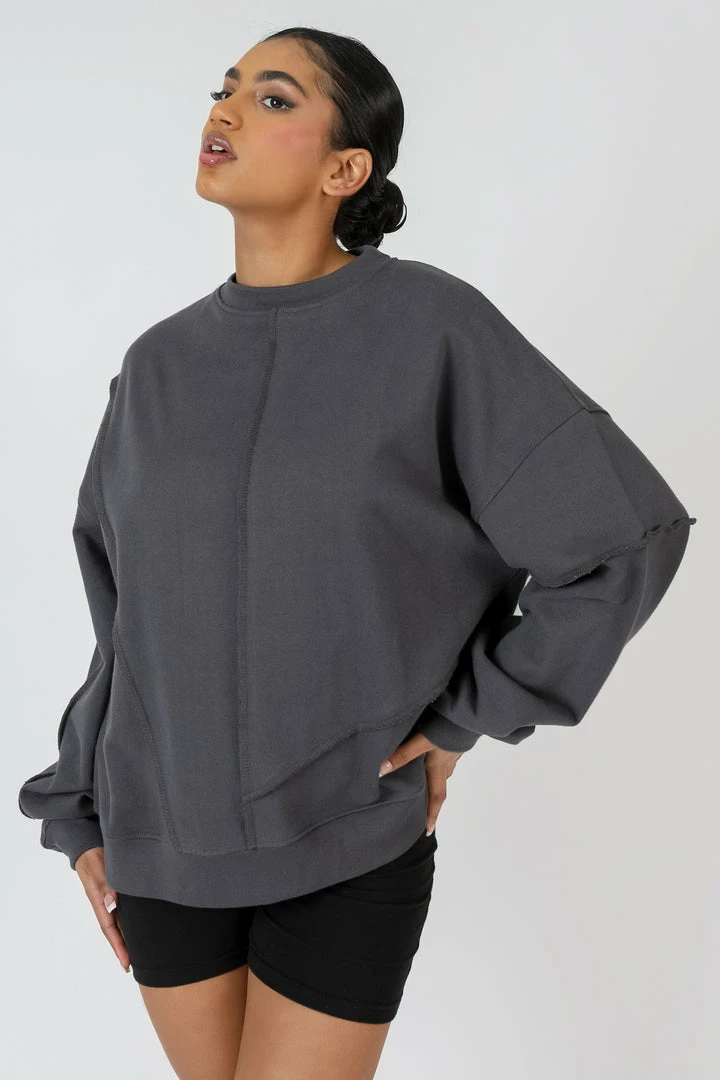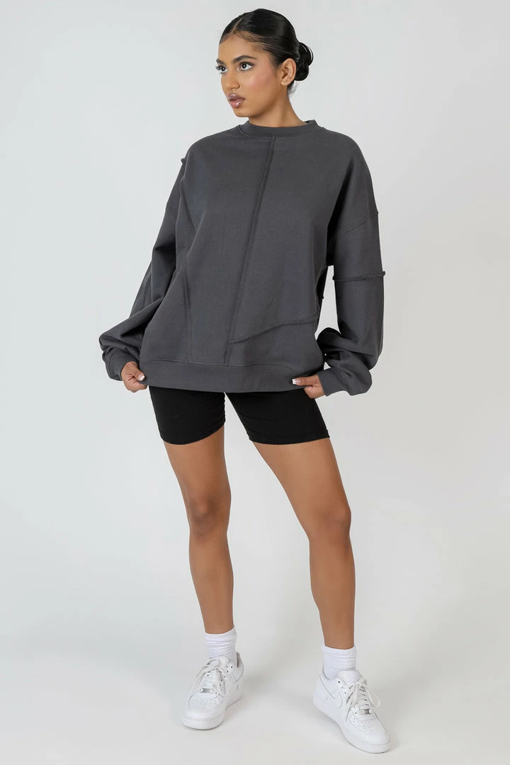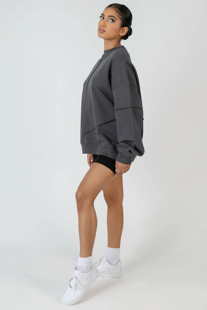 An oversized fit sweatshirt in dark grey with exposed seams details
