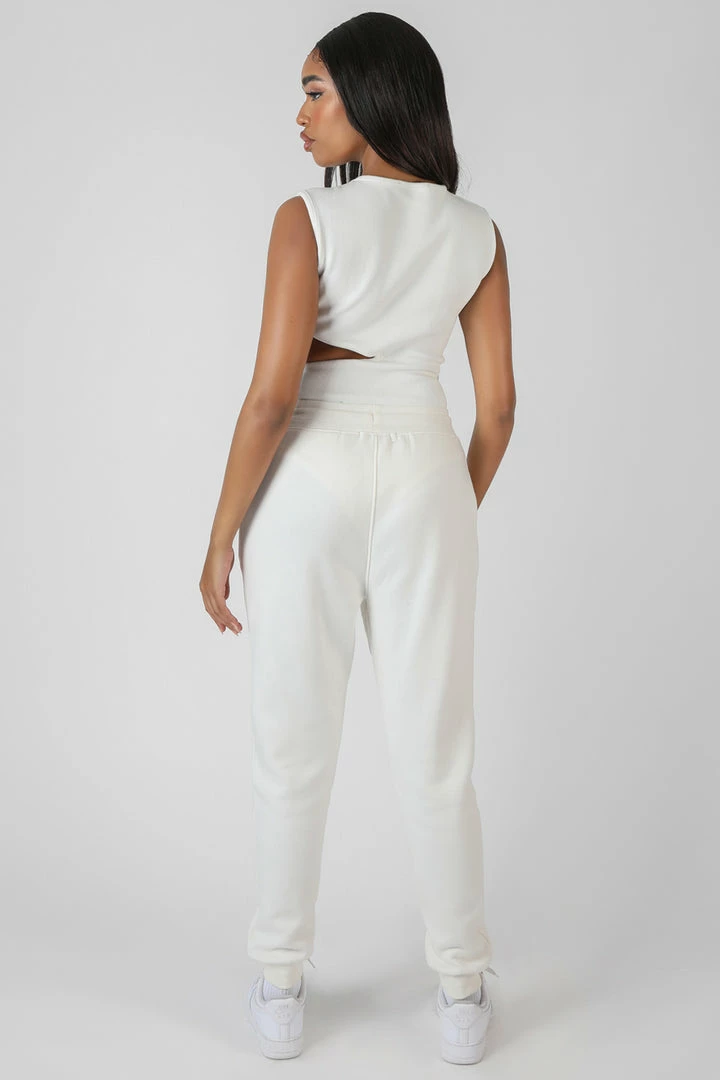 An oversized fit jogger in ecru featuring an elasticated waist ands cuffs with pockets and seam front details