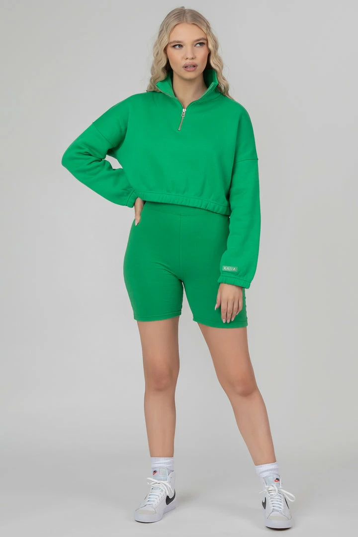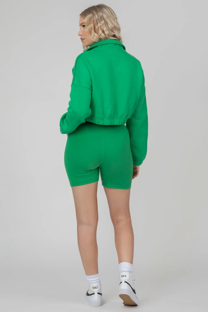 A cropped OVERSIZED FIT sweatshirt featuring a functional half zip, gathered hem and elasticated cuffs in green.