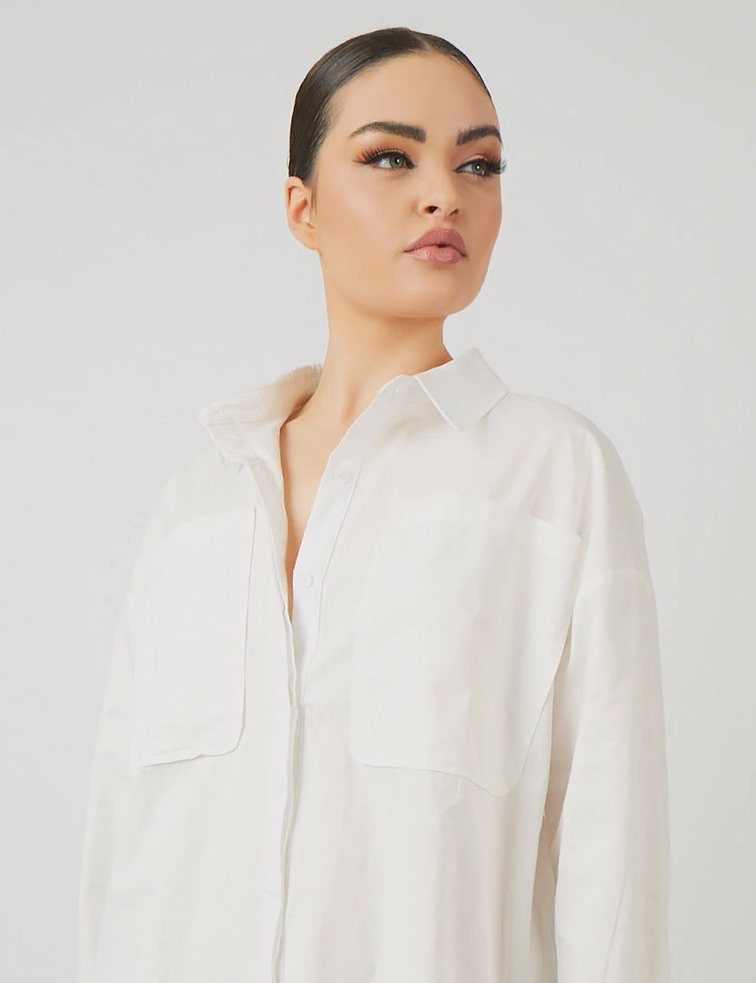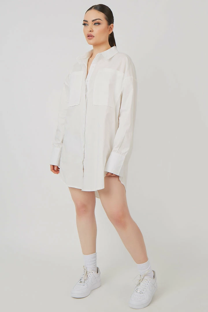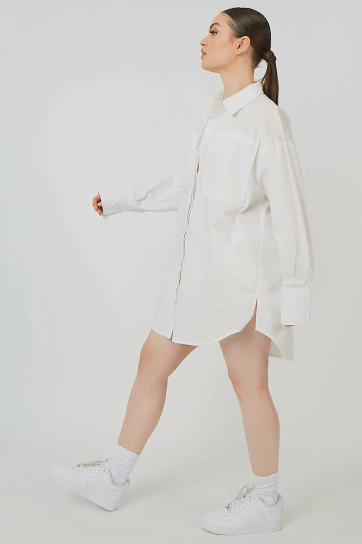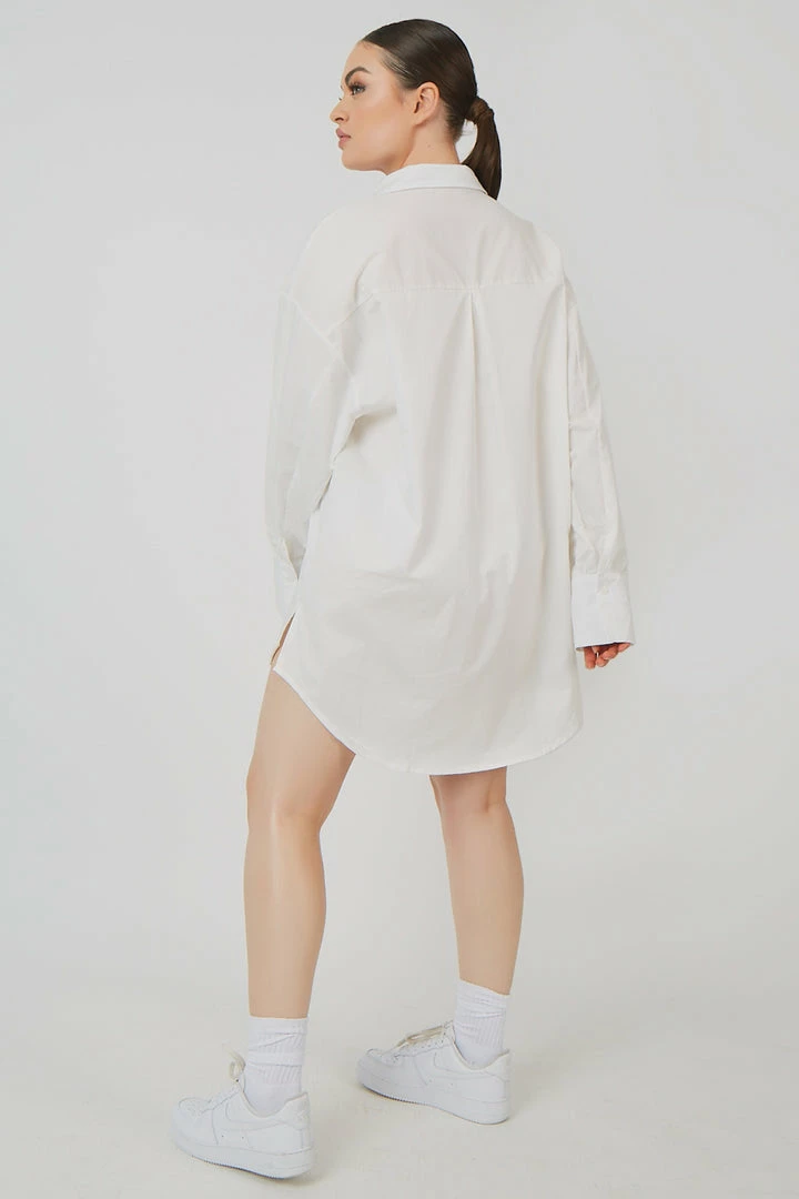 A must have updated basic for this Autumn with this white oversized fit shirt dress in poplin.