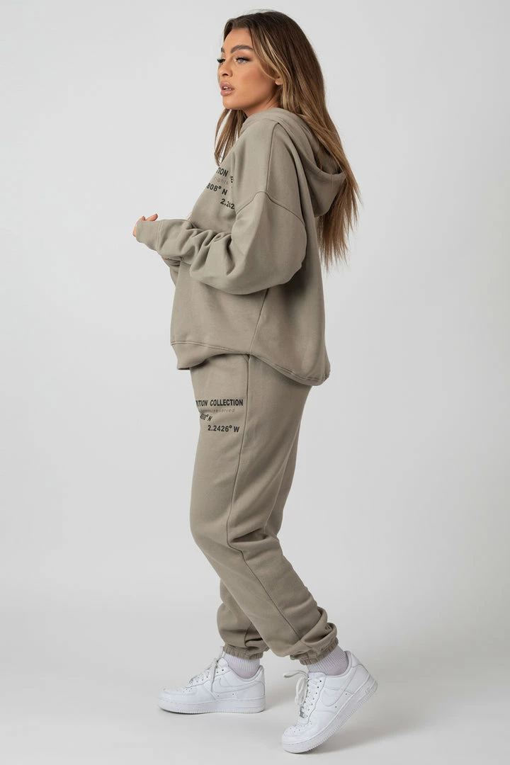 AN OVERSIZED FIT HOODIE IN LIGHT KHAKI WITH TEXT DETAILING