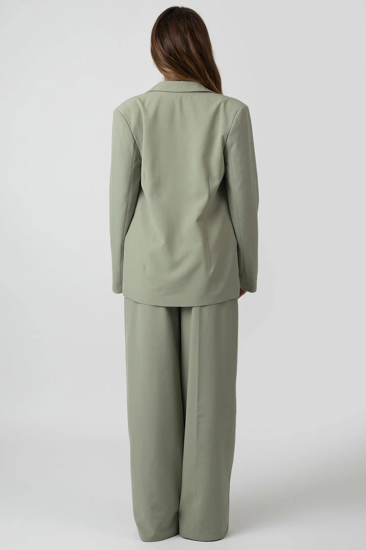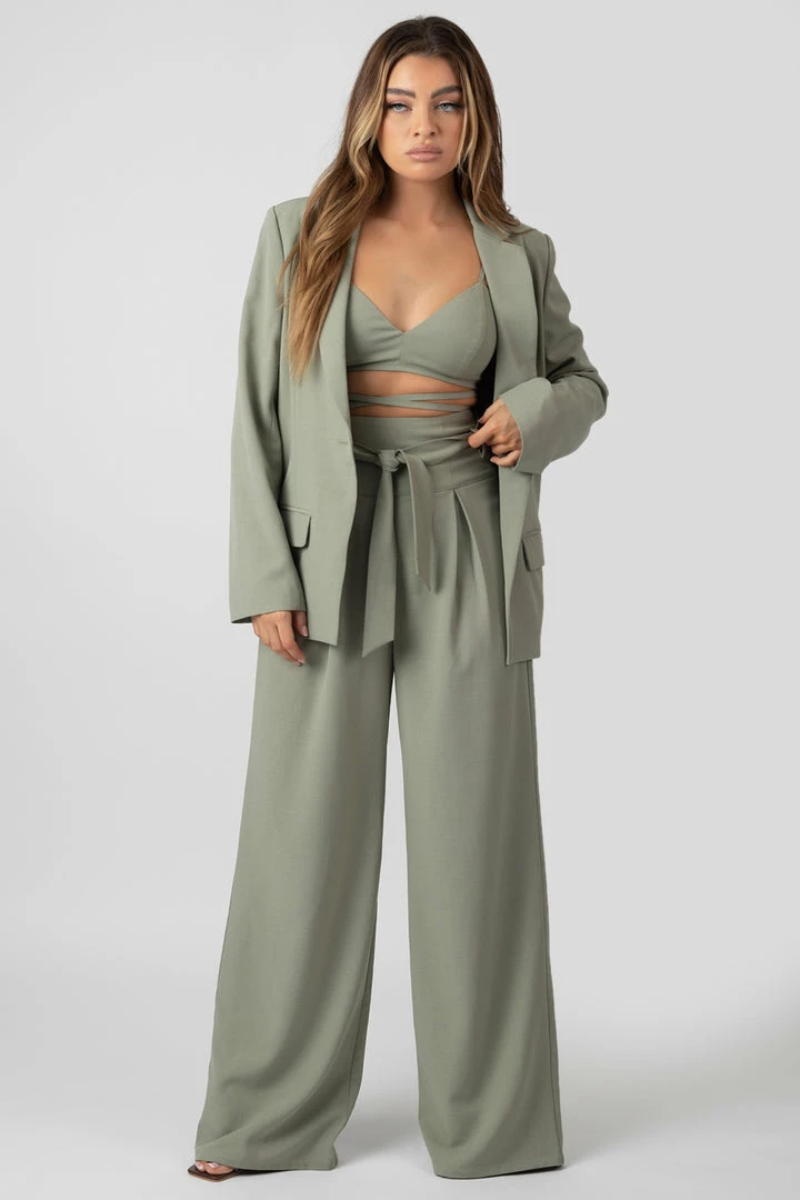 GIVE YOUR SUIT AN UPDATE WITH THESE HIGH WAISTED SAGE TROUSERS FEATURING A TIE WAIST AND FRONT POCKETS. WEAR WITH THE OBI BELT BLAZER FOR THE PERFECT FIT.