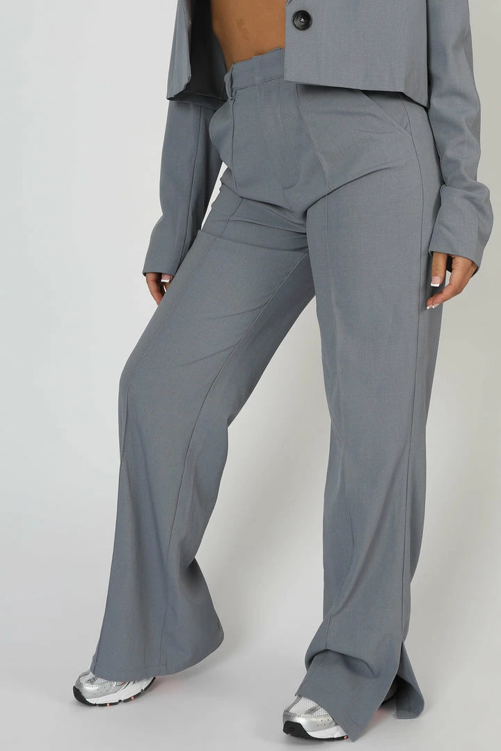 Upgrade your basics with these stylish seam detail relaxed fit trousers in grey. Pairs perfectly with the boxy crop blazer.