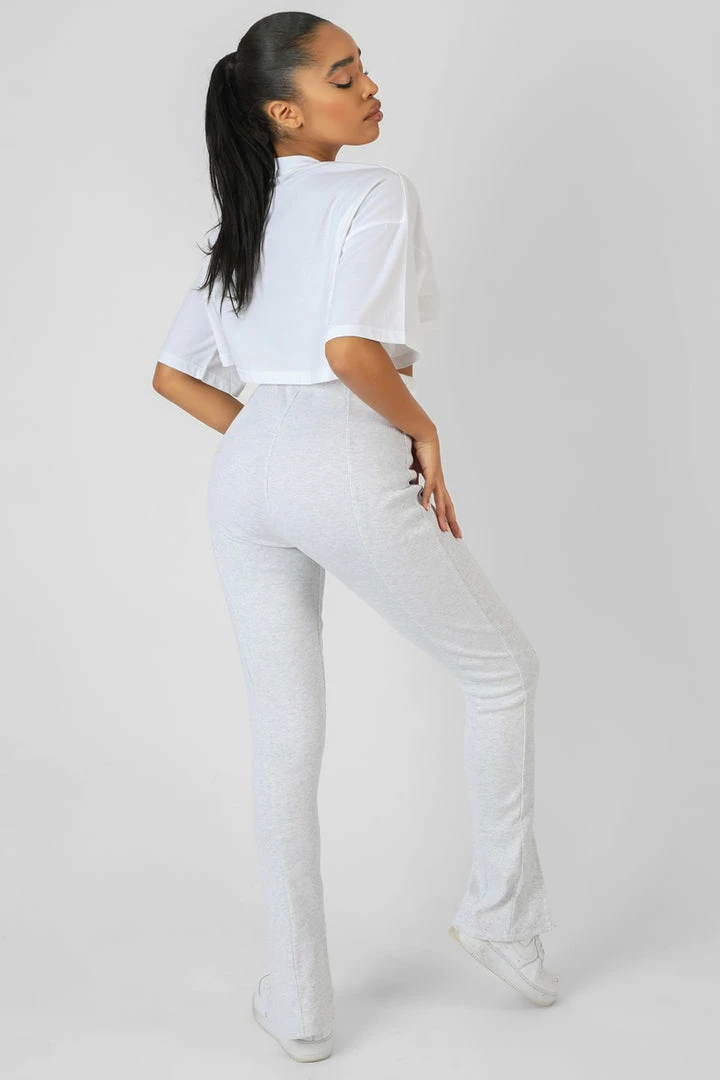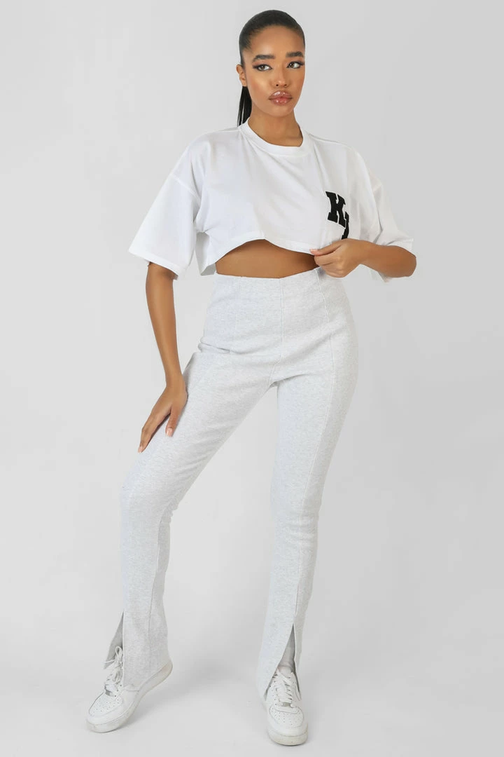 RIBBED HIGH WAISTED LEGGINGS IN OATMEAL MARL WITH SPLIT HEMS