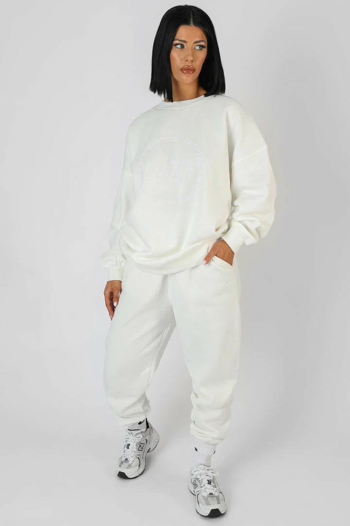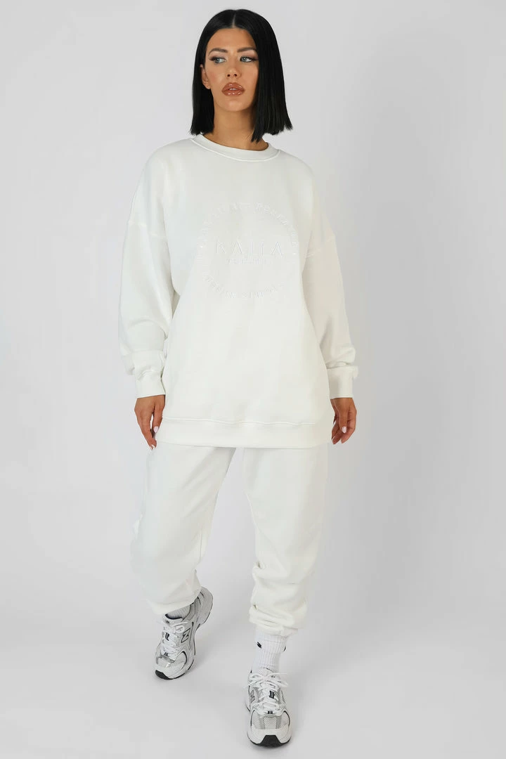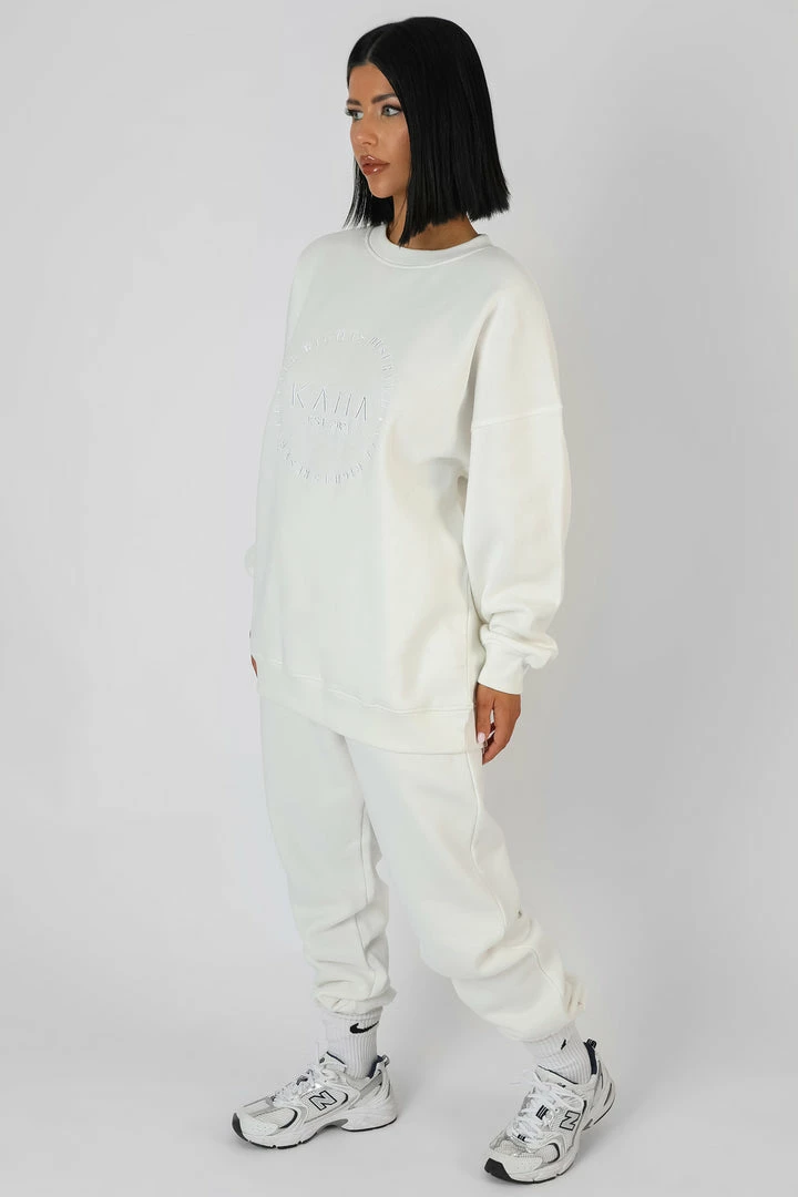AN OVERSIZED FIT JUMPER IN ECRU WITH TONAL EMBROIDERY.
