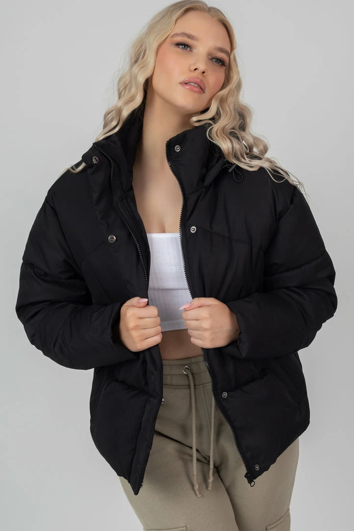 Stay warm this Autumn with the ultimate puffer jacket featuring a high neck and zip fastening in black.