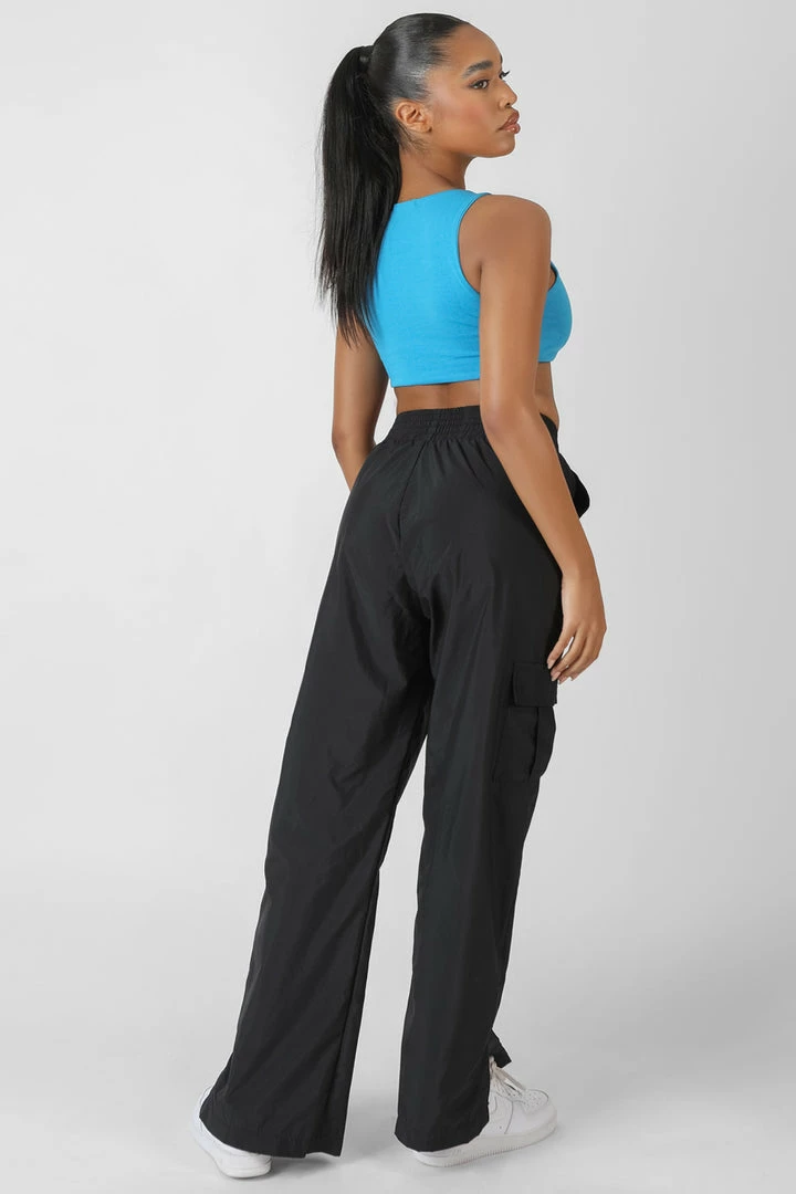 A bralet in blue with thin strappy sleeves and underbust detailing.