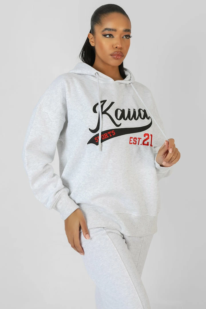 OVERSIZED FIT SWEATSHIRT IN OATMEAL MARL WITH VARSITY STYLE KAIIA BRANDING