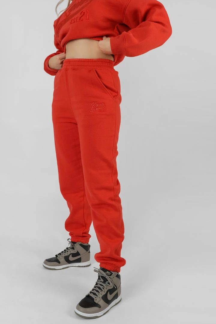 OVERSIZED FIT 90S JOGGERS IN FLAME RED WITH TONAL VARISTY STYLE KAIIA BRANDING